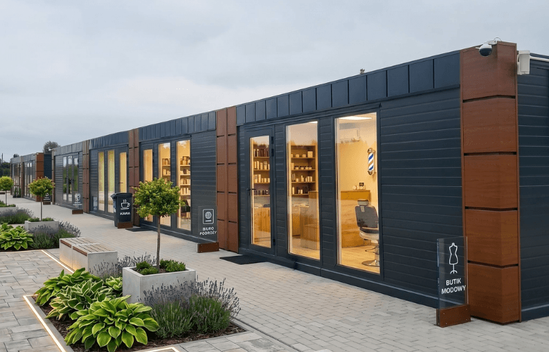 Modern office and service pavilions are a great solution for companies that need a functional space quickly, without compromising on design or build quality. Our projects work perfectly as offices, customer service points, commercial units, or support facilities for larger projects.